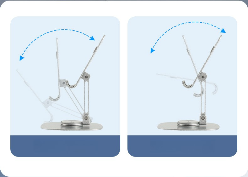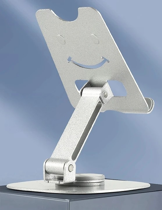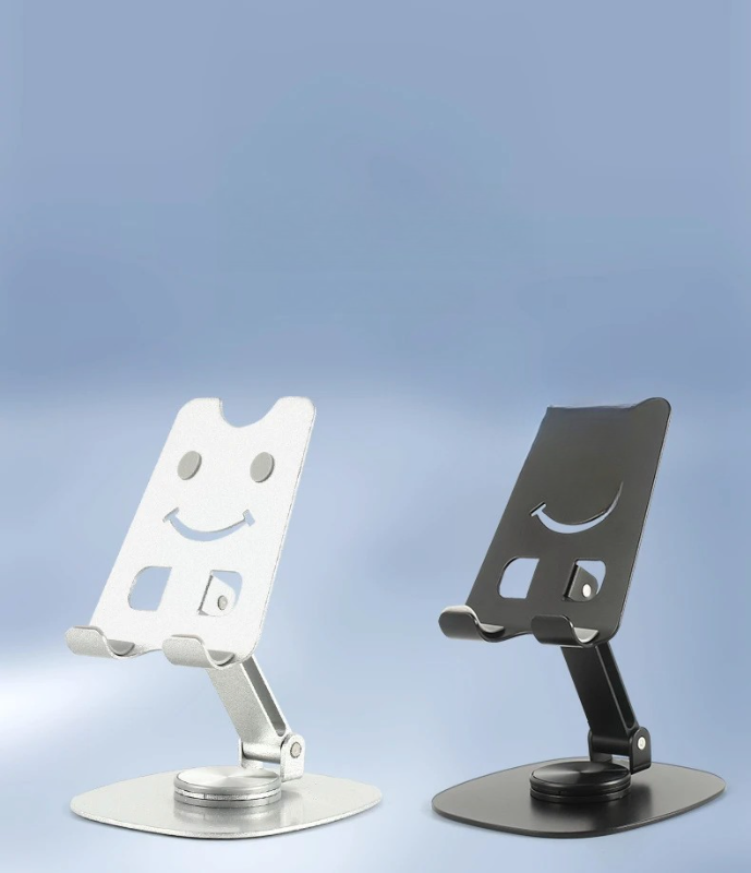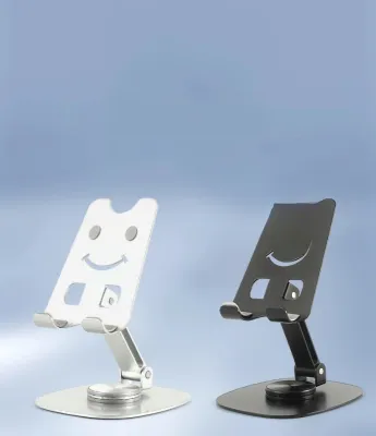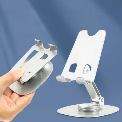 - Adjustable aluminum phone and tablet stand with foldable desktop design