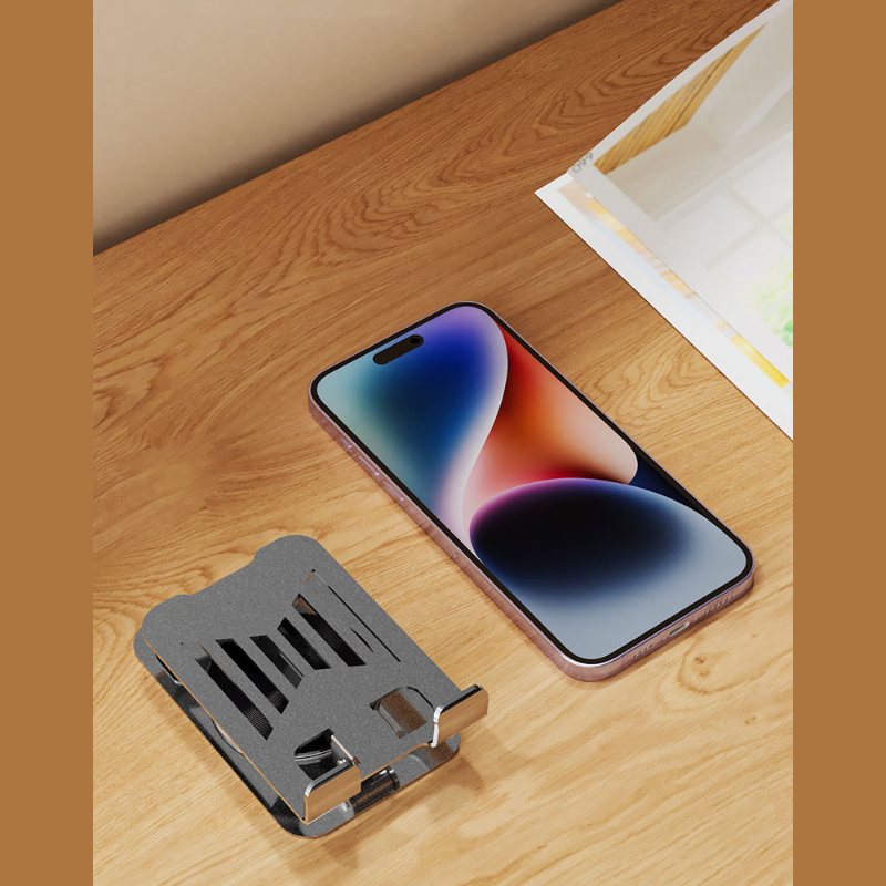 - The Foldable Metal Mobile Phone Stand is a sturdy and versatile desk holder designed for smartphones and tablets for everyday convenience