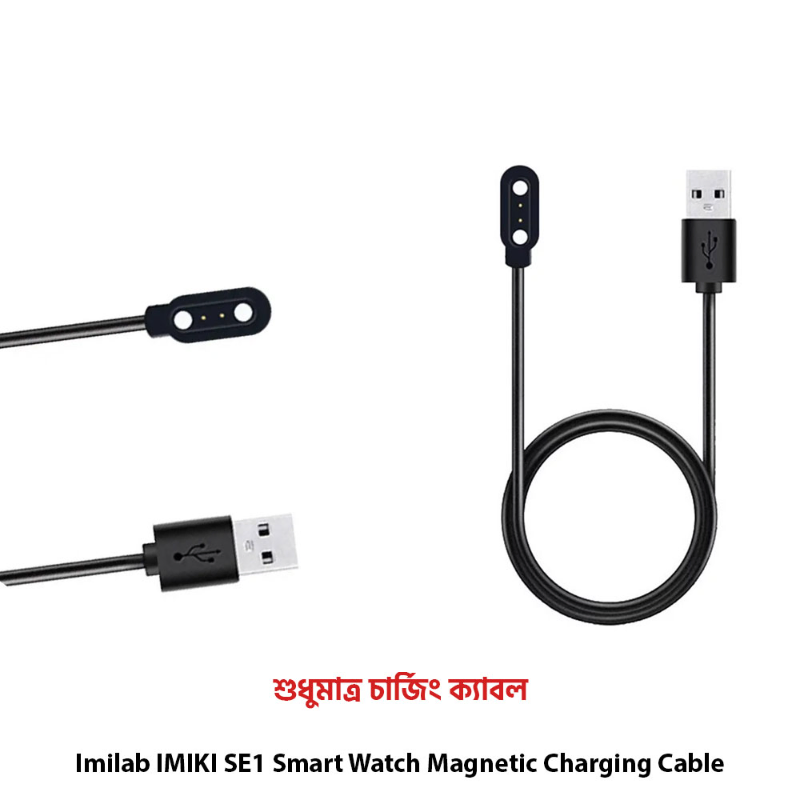 This product is a magnetic charging cable designed for the IMIKI SE1 Smart Watch by Imilab. It uses a two-pin magnetic charging system to support reliable charging. The cable comes in black color with a standard line length and allows easy usage by connecting the USB to a PC or AC charger. With an approximate weight of 15g, it is lightweight and convenient for daily use. The product is packed in a poly bag and originates from China.
