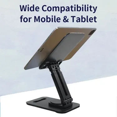 - Adjustable desktop stand designed for mobile phones and tablets