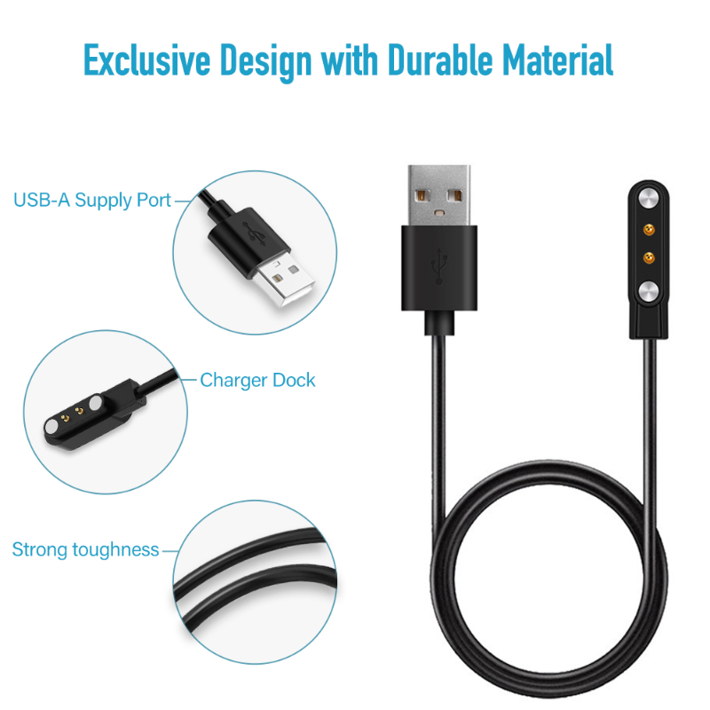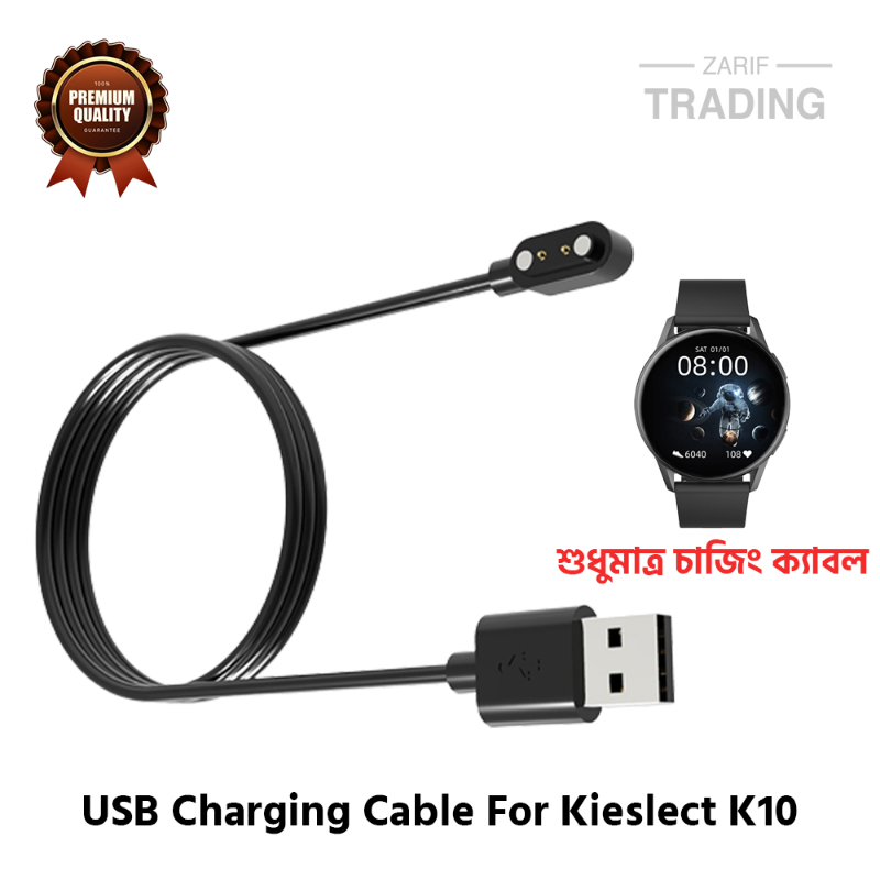 This is a brand new, high-quality magnetic charging cable designed for the K10 by Kieslect. It features a special magnetic plug design with strong suction and a two-pin charging system for secure connection. The compact and lightweight design makes it ideal for travel and business use. Charging is simple—place the watch on the magnetic dock and connect the USB to a PC or AC charger. The cable comes in black color with a standard length, weighs approximately 20g, and is packed in a poly bag. The product originates from China.