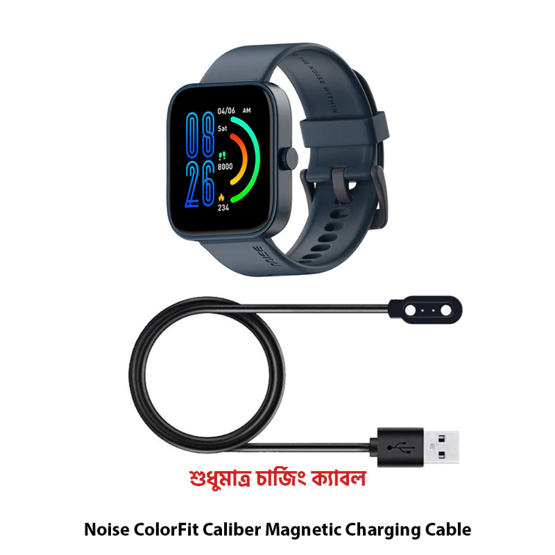This product is a magnetic charging cable designed for the ColorFit Caliber Smart Watch by Noise. It uses a two-pin magnetic charging system to support reliable charging. The cable comes in black color with a standard line length and offers easy usage by connecting the USB to a PC or AC charger. With an approximate weight of 15g, it is lightweight and convenient for daily use. The product is packed in a poly bag and originates from China.
