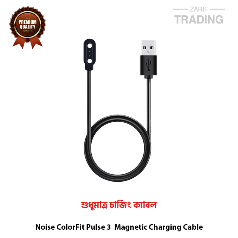 This product is a magnetic charging cable designed for the ColorFit Pulse 3 Smart Watch by Noise. It uses a two-pin magnetic charging system to support reliable charging. The cable comes in black color with a standard line length and offers easy usage by connecting the USB to a PC or AC charger. With an approximate weight of 15g, it is lightweight and convenient for daily use. The product is packed in a poly bag and originates from China.