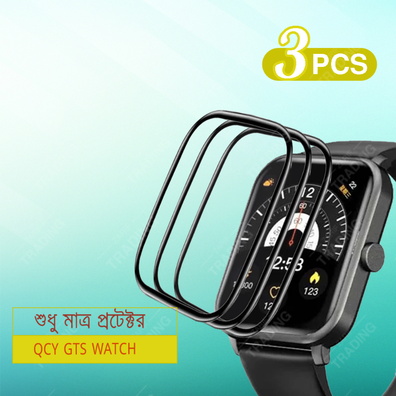The QCY GTS smart watch screen protector is custom designed to fit the screen precisely and provide full screen coverage. Made from TPU film using high quality PMMA PC material, it features a slim 0.3mm thickness with whole transparency. This soft protective film helps protect against scratching, scraping, and abrasion during daily use. The shockproof, shatter-resistant, and scratch-resistant design maximizes screen protection without using tempered glass. It supports automatic scratch repair, resists fingerprints, and maintains original color and brightness. Quick and easy to apply, removable without residue, and supplied with one soft protective film plus dry and wet wipes.